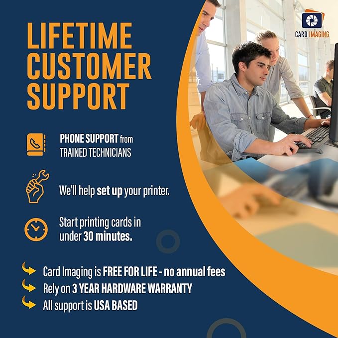 - π¦π¨π£π£ππππ¦ ππ‘πππ¨πππ: Color ribbon, 100 PVC cards, and Card Imaging design software