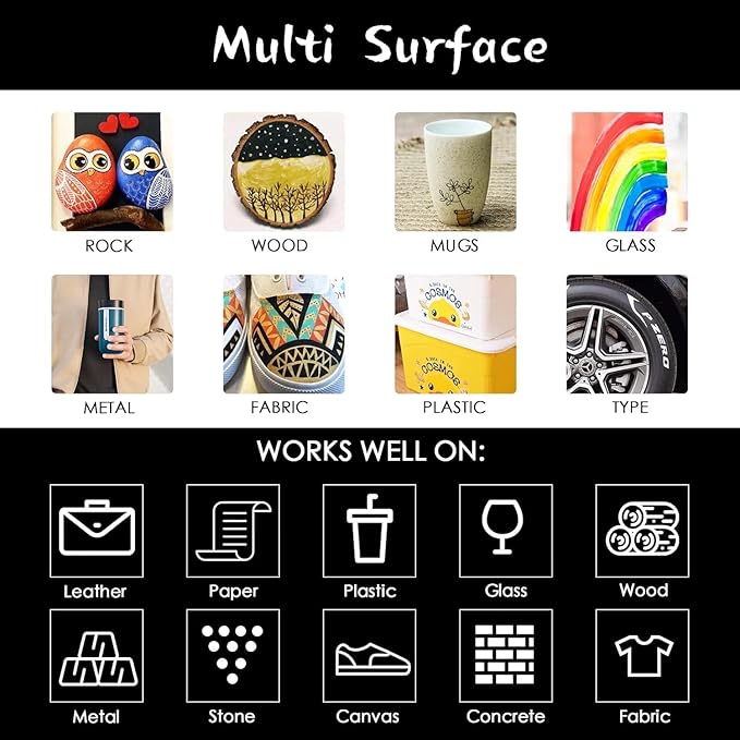 - WIDELY APPLICATION - These metallic permanent markers work well on most surfaces, such as paper, enamel, chalkboards, canvas, wood, brick, stone, glass, mirrors, windows, metal, plastic, ceramic, fabric, etc. Decorate your clothes, gift bags, shoes, and personalize coasters, coffee mugs, journals and other DIY crafts. Water-based ink pens will be a great option for painting on porous surfaces such as paper, wood, or fabric.