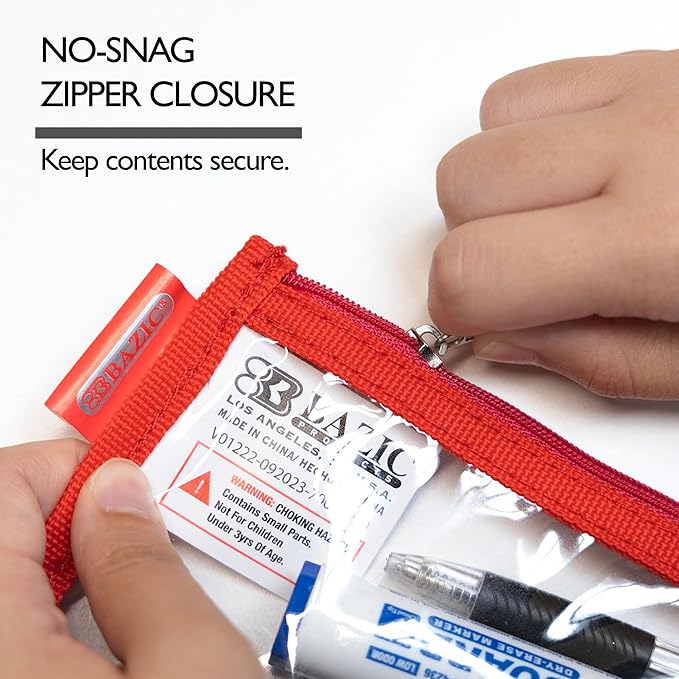 BAZIC Pencil Pouch 3 Ring Binder Pouch w/Rivet Enforced Rings Holes, 11.5"x6.5" Clear Color, Zipper Pouches Case Cosmetic Bag, 24-Pack