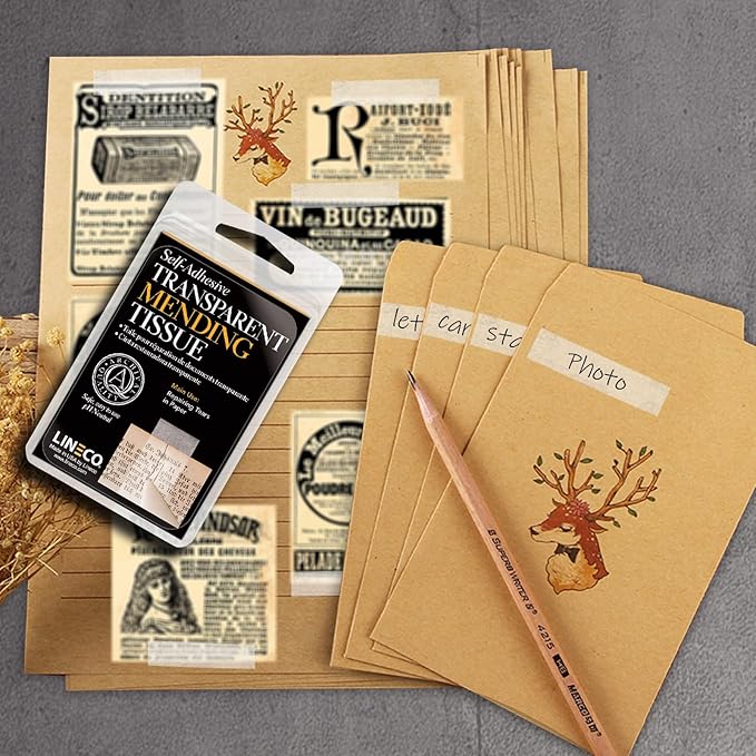 Lineco Archival Document Repair Tape, Repairs Paper Documents, Book Pages, Maps, Ephemera, Photos and Printed Artwork. Ideal for Family Archivist, Acid-Free Translucent Tape 0.5" x 12', Pack of 1