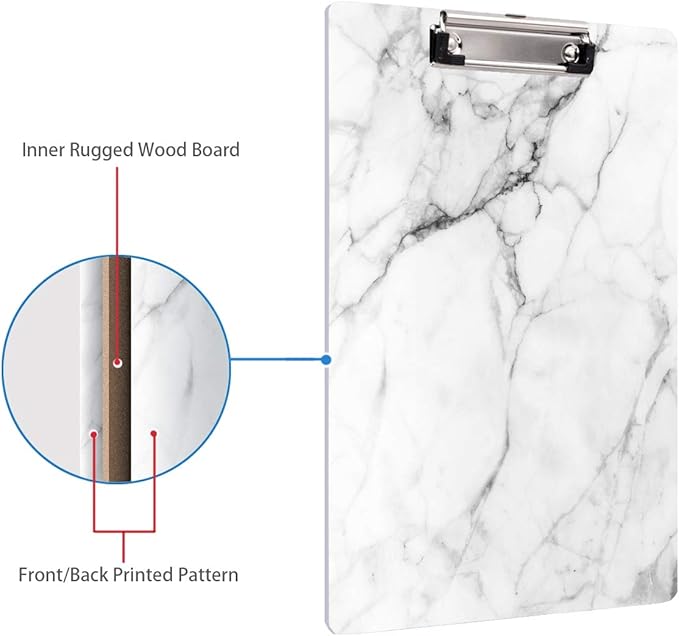 - Fashion cute print design, classic and chic marble elements, sturdy 2.5mm clipboard with full color printing and gloss lamination, say goodbye to monotonous traditional clipboard.