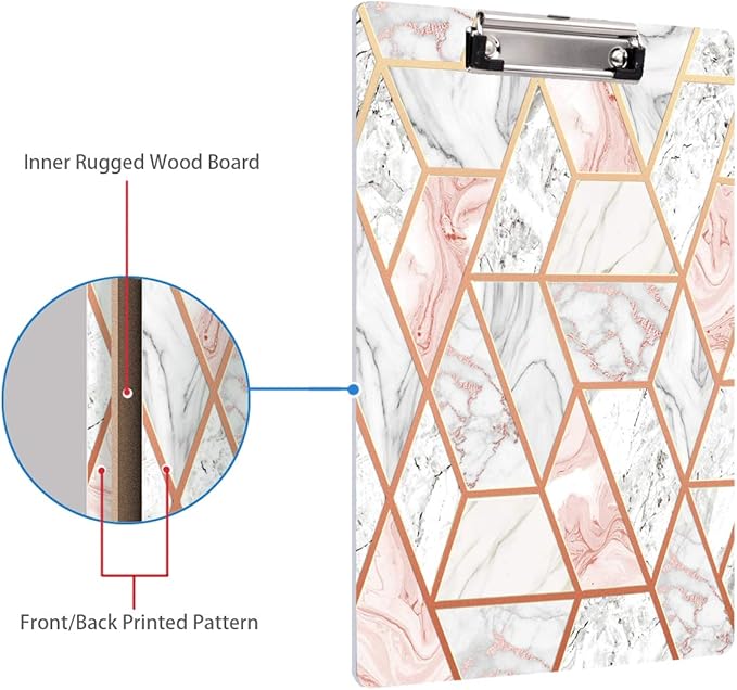 - Fashion cute print design, classic and chic marble elements, sturdy 2.5mm clipboard with full color printing and gloss lamination, say goodbye to monotonous traditional clipboard.