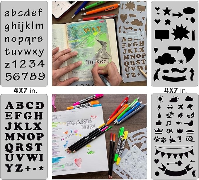 - ✔️ COMPLETE JOURNAL ACCESSORIES - The Bible journaling supplies includes x6 Colored Pencils x5 Bible highlighter x5 Colored Bible Pens x3 Scripture Pencils x3 lettering stencils for journaling and x1 sharpener