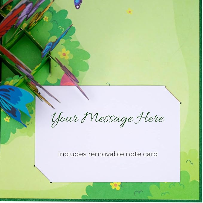 Paper Love 3D Butterflies Pop Up Card, Gift for Birthday, Wedding, Anniversary, Mothers Day, Thank You, Get Well, All Occasion or Just Because - 5" x 7" Cover - Includes Envelope and Note Tag