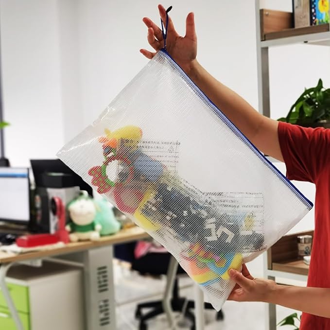 - 10 PCS Plastic mesh zipper bags, 16.9 x 12 inch A3 size. Widely used in office supplies, school, home daily life, hospital and travel. These pouches could meet your needs in all ways