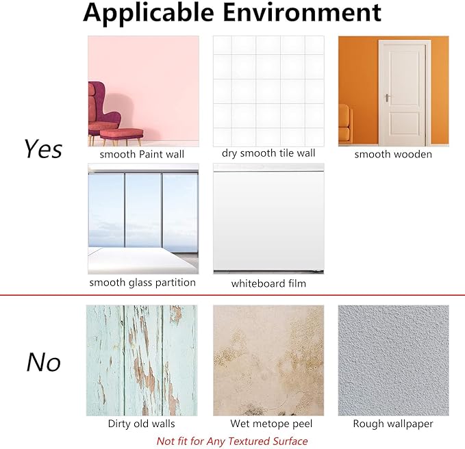 - Easy installation on smooth paint wall,dry smooth tile wall, wooden door,office glass partition, not fit for any textured surface