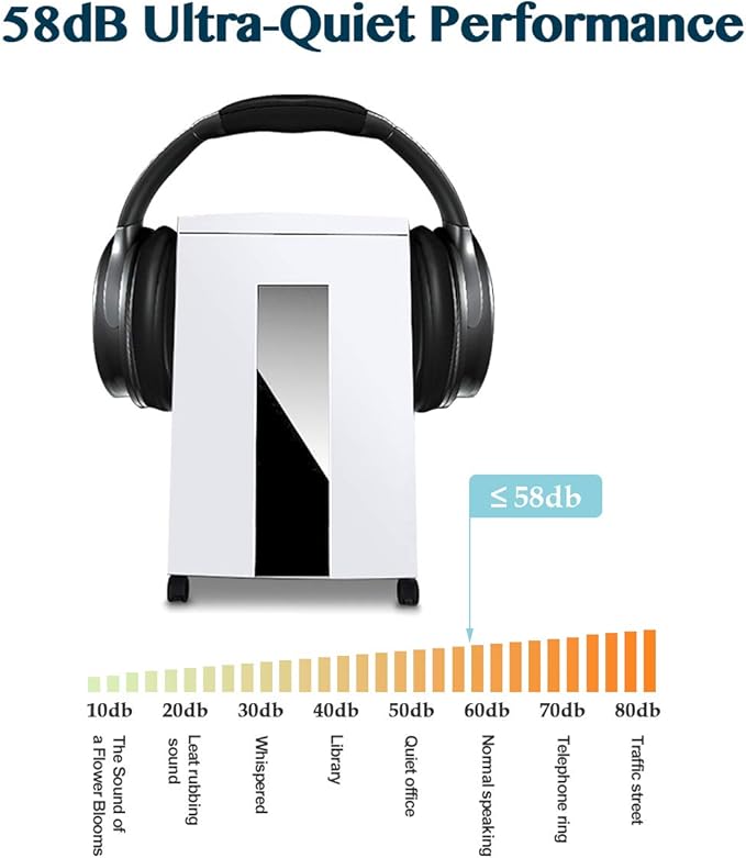 - 【Ultra-Quiet Performance】Low noise level 58dB ultra-quiet performance; 6 gallons pull-out waste bin with large easy viewing transparent window. Perfect for a home paper shredder or a quiet paper shredder for office environments.