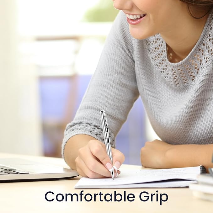 - Nice Looking Professional Pens : Metal-design silver pen barrel and chrome accent look elegant and eye-catching make it perfect for men, executive, business, office, college, flight attendant, police officer, guest pen, uniform pen, co-worker gift, etc