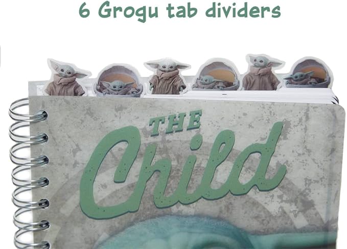 - 8x7 JOURNAL - A spiral bound notebook for kids. Divider pages feature characters, sayings and themes from the Disney+ Mandalorian TV Series.