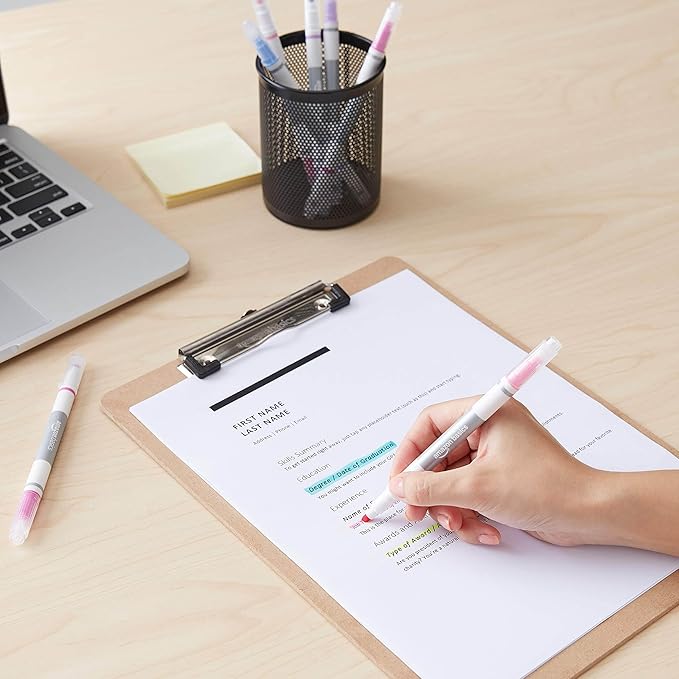 Amazon Basics Erasable Highlighters Assorted Colors, Dual Tip, 12-Pack, Office and School Supplies for Note-Taking
