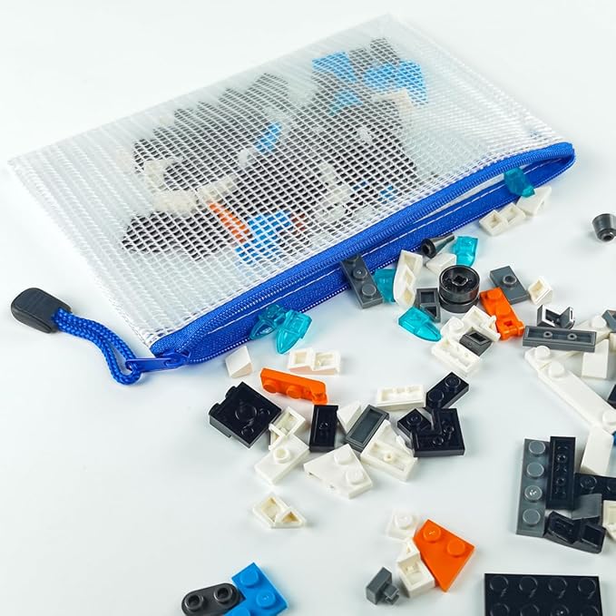 AUSTARK 20Pcs Board Games Storage Bags, PVC Mesh Zipper Pouches, Zippered File Bags, Plastic Waterproof Storage Bags for Office School Home Travel Cosmetic (B6 Size 7.6 x 5.3 Inches, White and Blue)