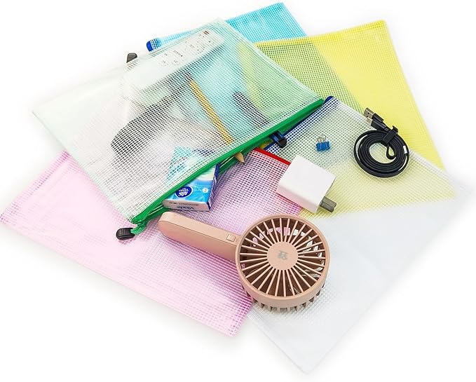 AUSTARK 20 Pcs Zipper File Bags, Plastic Mesh Pouch, Board Game Storage Bag, Waterproof Bags for Office School (B5 Size 11.4''x8.2'', Multicolored)