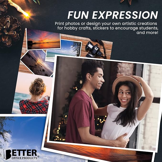 Better Office Products Self-Adhesive Photo Paper, Sticky Photo Paper, Glossy, 8.5 x 11 Inch, 100 Sheets, 135 gsm, Letter Size, 100 Count Pack