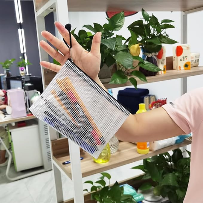AUSTARK 20 Pcs Zipper File Bags, Plastic Mesh Pouch, Board Game Storage, Waterproof Bags for Office School (B6 Size 7.6''x5.3'', White and Black)