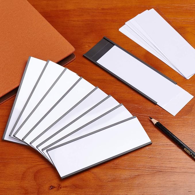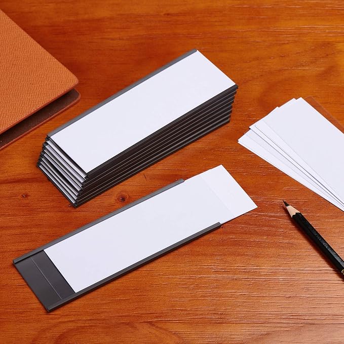 - Easy to use: write on the included paper strip, slide in the paper insert and the transparent protective film, stick the magnetic label holder to clean and flat surface, saving time and making reposition easier compared with traditional adhesive labels