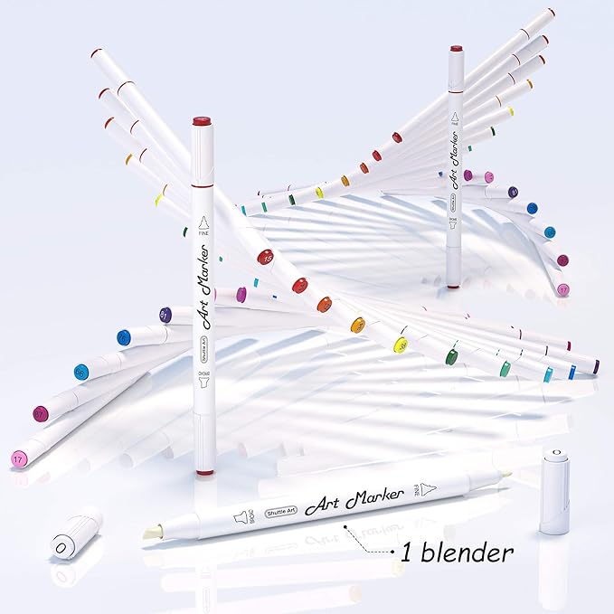 - EASY TO BLEND INK & CIRCLE SHAPED: Shuttle Art Dual Tip Markers blend and layer well without leaving streaks behind and drying quickly. Blending colors is a breeze by layering one unique color onto another creating an unlimited color palette. The circle shaped barrel can be slipped easily and comfortably. And there also have ridges on the cap to prevent the markers from rolling off on smooth surfaces.