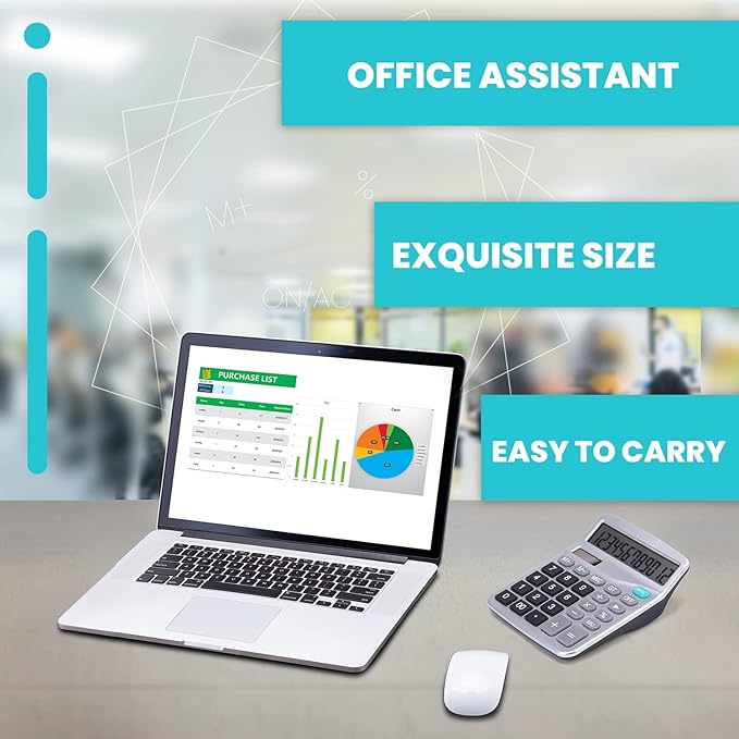 - Large display: 12 digits large LCD display and large numbers, eye-angled, easy to read