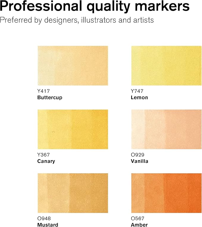 - Set contains: Buttercup, Lemon, Canary, Vanilla, Mustard, and Amber