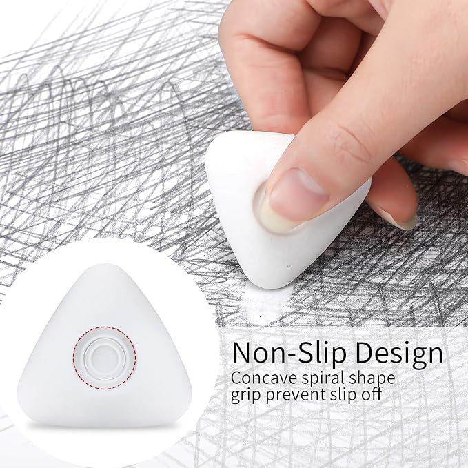- Multi-shape erasers: the multi-shape pencil painting erasers feature 4 different cube shapes that can fit comfortably in your hand, the corners are suitable for removing details while the flat surface is ideal for large areas, clears away lines, smears and other unwanted marks; There is a concavity in spiral shape of this drawing erasers, which is easy to fix your finger while using it to wipe
