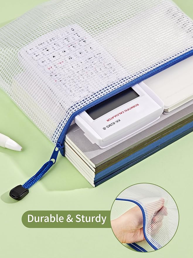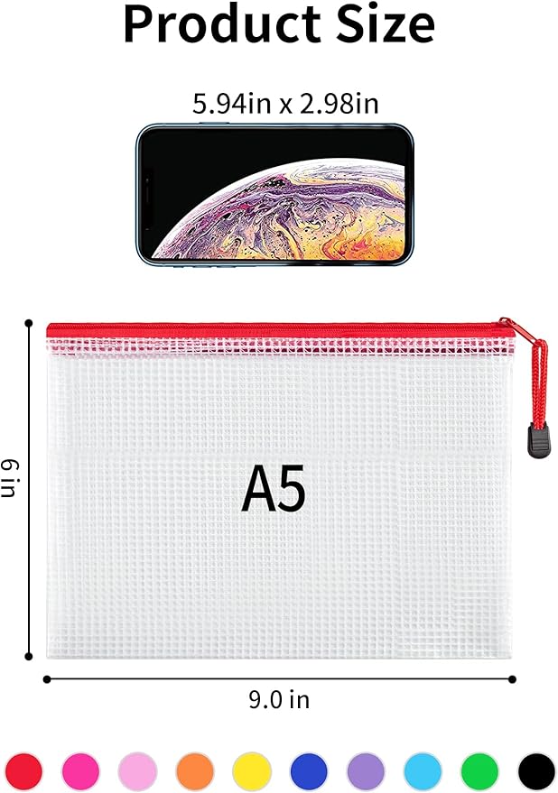 - 20Pcs ZIPPER BAGS: The package comes in 20pcs A5 (6x9 inches) mesh zipper pouches. An ideal assistant to help you organize and store at school, office, or home.