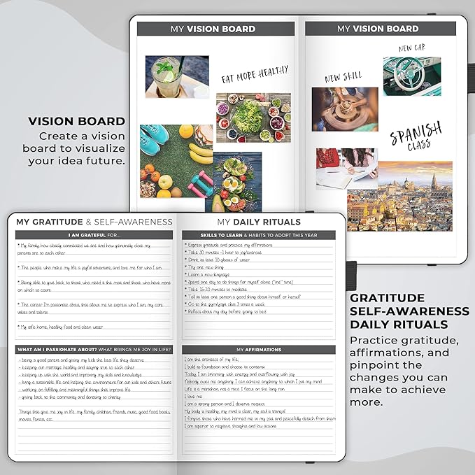 - SET & ACHIEVE LIFE GOALS STRATEGICALLY – This goal setting planner 2025 will help you create a vision for your life, define your life goals, and incorporate them into your monthly, weekly, and daily agendas.