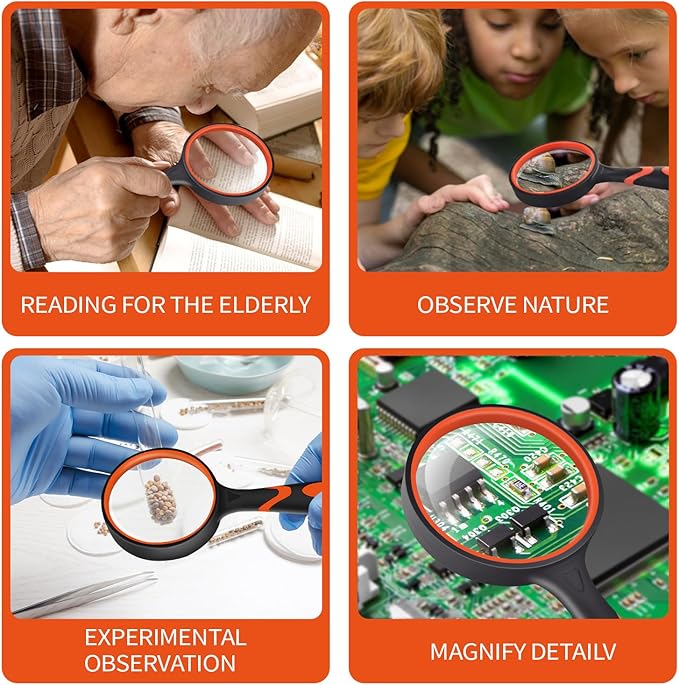 - 【3 Pack Magnifying Glass】 3 Pack 10X handheld Rubber reading magnifier gives you a clearer experience.