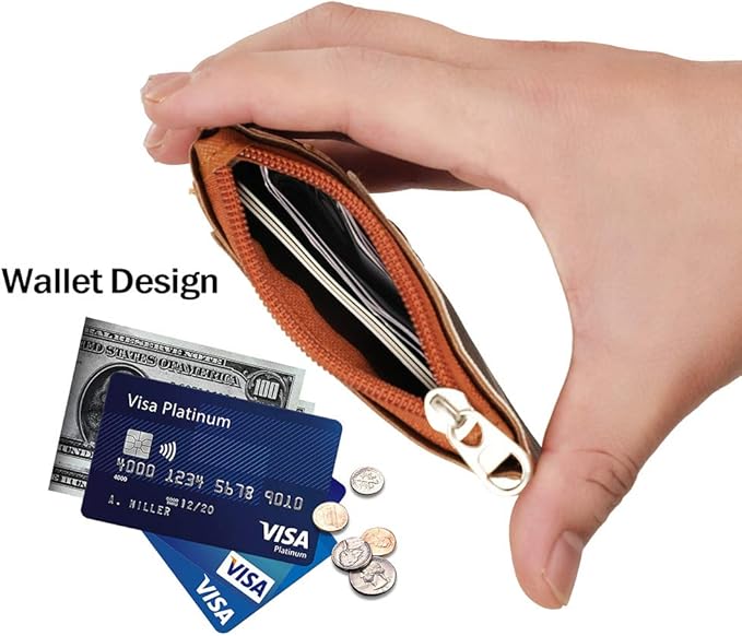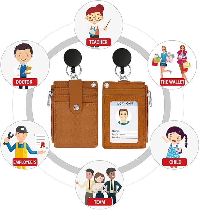 Cute ID Badge Holder Retractable Lanyard Reel Clip with Heavy Duty Carabiner, 5 Card Slots in 2 Sided with Key Ring and Zipper for Students Teens Boys Girls Office Staff Women (Brown)
