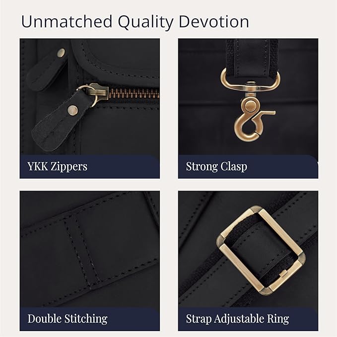 - QUALITY CRAFTSMANSHIP: The commuter briefcase is constructed with fine materials and expert craftsmanship. YKK zippers, solid brass hardware, precision stitching with heavy bonded thread, and a superb internal lining will withstand many years of commuting.