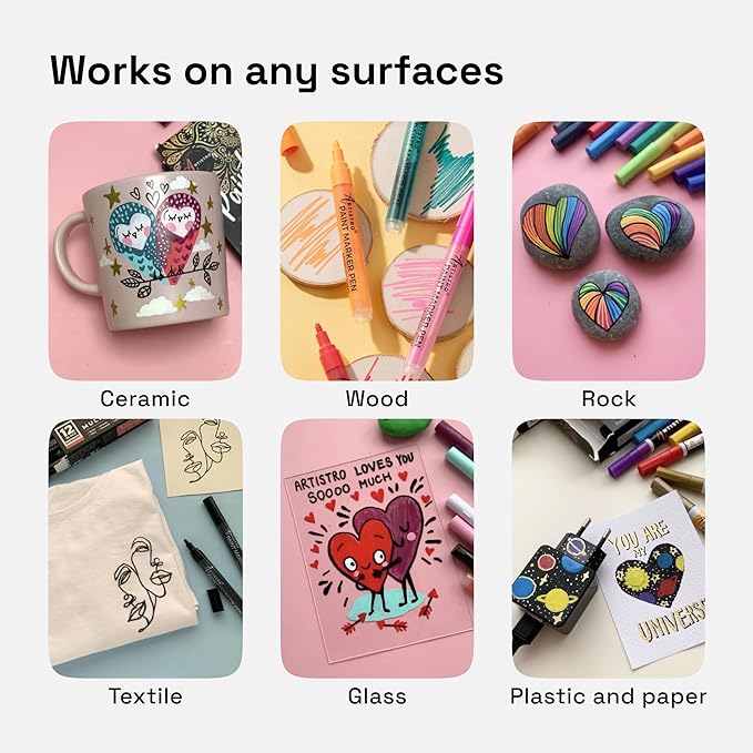 - MULTI-SURFACE: Artistro craft markers are perfect for almost any surface. Paint on rocks, wood, glass, or more with these dual brush pens! Or use them as fabric paint pens.