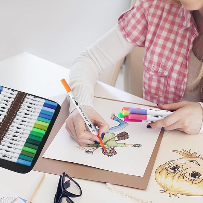 - 72 CLASSIC VIVID COLORS OPTIONS:This complete set of Duo Tip Pen art markers comes with a whopping 72 unique and vibrant color options to choose from, NO duplicate. Meet all you need for adult coloring books, drawing, coloring, sketching, doodling and just about anything else.