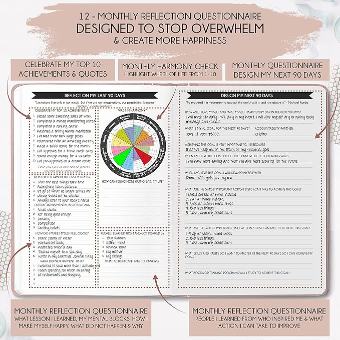 - THIS IS A DELUXE UNDATED HARMONY PLANNER - Showing you how to become the best possible version of yourself on a mental, physical & interpersonal level. It’s the only planner of its kind, and its design is based on leading scientific studies that are proven to increase productivity, harmony & happiness! It has a vision board to stay focused, morning & evening routines, mind maps, reflection pages, 90-day habit tracker, back pocket, harmony guide and so much more than any other planner listed!