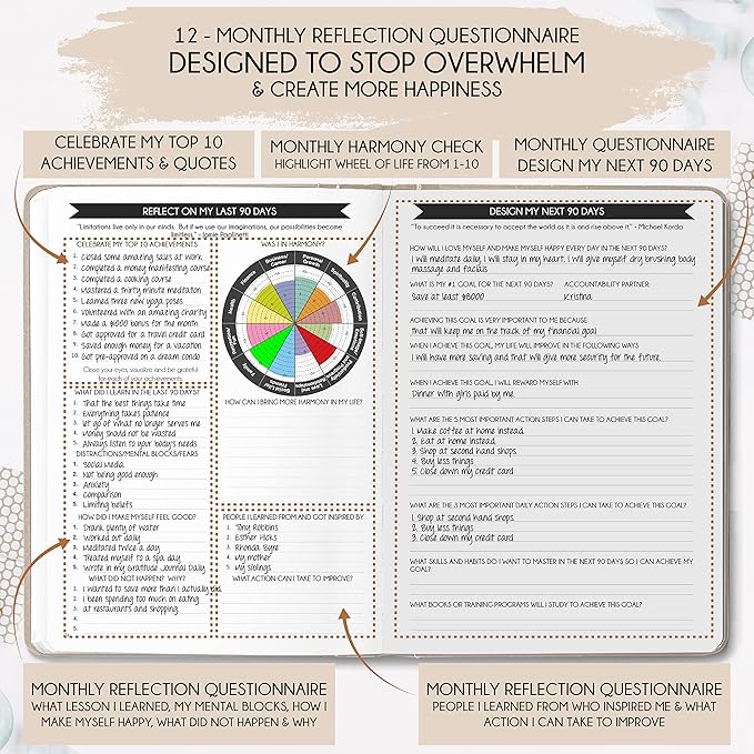 - THIS IS A DELUXE UNDATED HARMONY PLANNER - Showing you how to become the best possible version of yourself on a mental, physical & interpersonal level. It’s the only planner of its kind, and its design is based on leading scientific studies that are proven to increase productivity, harmony & happiness! It has a vision board to stay focused, morning & evening routines, mind maps, reflection pages, 90-day habit tracker, back pocket, harmony guide and so much more than any other planner listed!