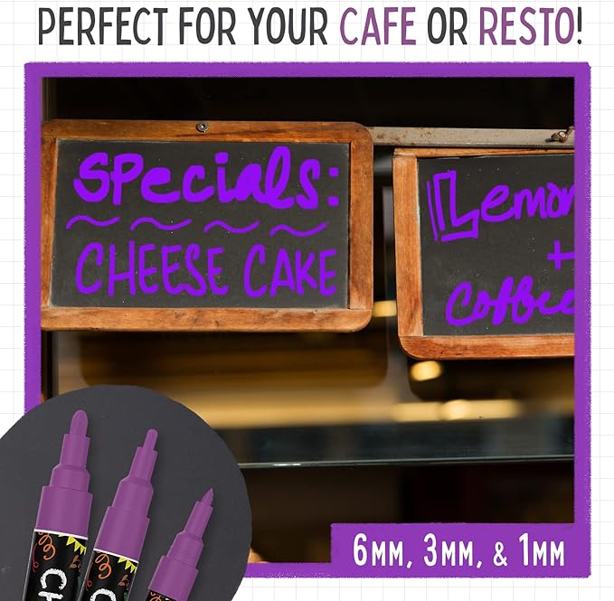 5 Purple Chalkboard Chalk Pens - Purple Dry Erase Markers for Blackboard, Chalkboard Signs, Windows, Glass | Variety Pack - Fine & Jumbo Size Ink Pen (1mm, 3mm, 6mm, 10mm, 15mm)