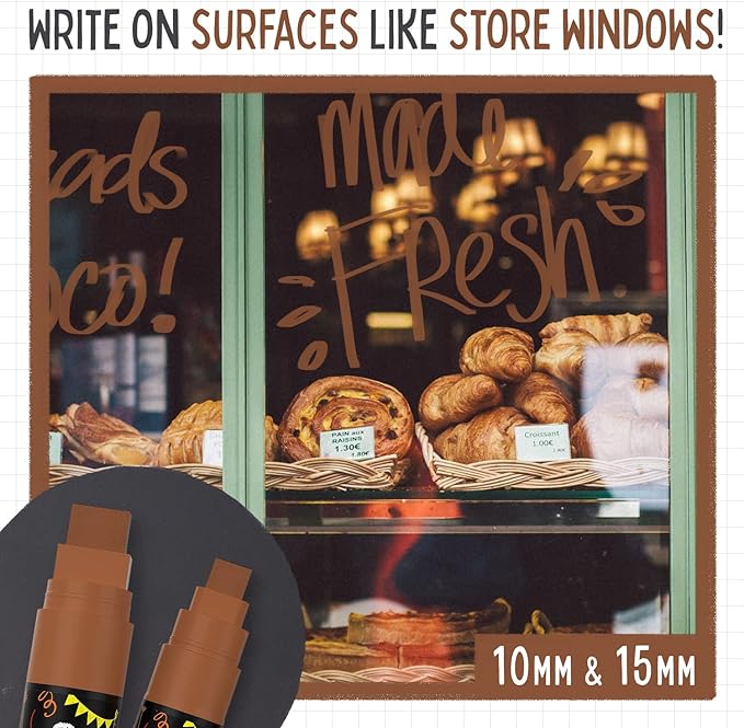 5 Brown Chalkboard Chalk Markers - Brown Dry Erase Markers for Blackboard, Chalkboard Signs, Windows, Glass | Variety Pack - Fine & Jumbo Size Ink Pen (1mm, 3mm, 6mm, 10mm, 15mm)