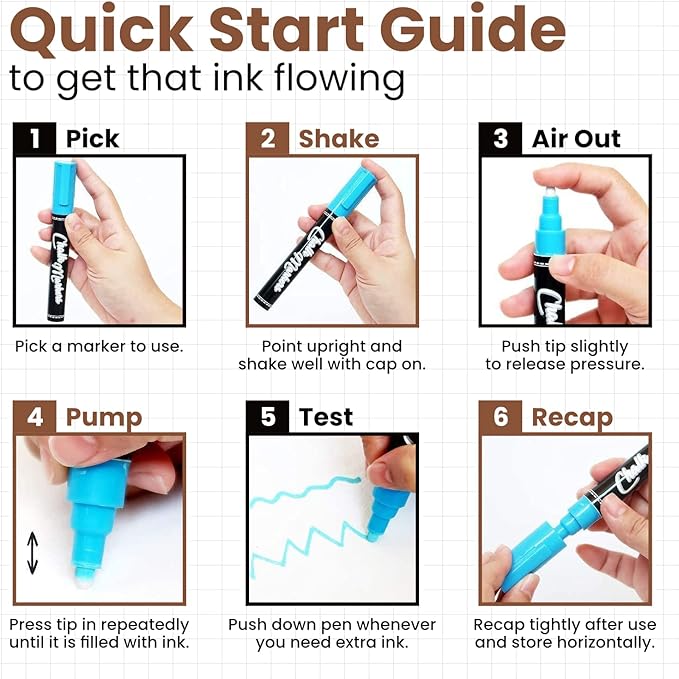 - Mess-Free: These liquid chalk pens are washable, dustless, non-toxic and safe for use at home