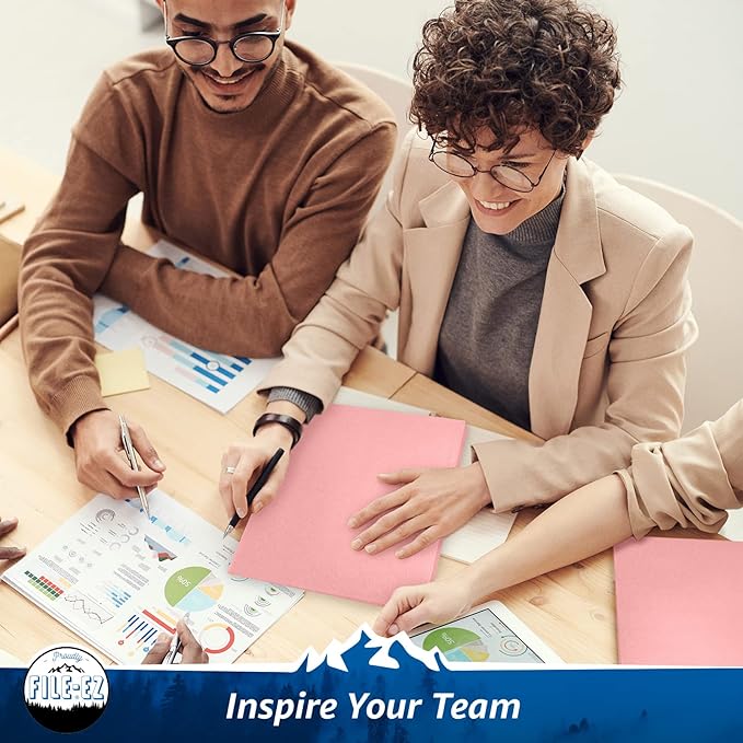 FILE-EZ Two-Pocket Folders, Pink Color, 25-Pack, Durable Textured Paper with Matte Finish, Letter Sheet Size (EZ-32590)