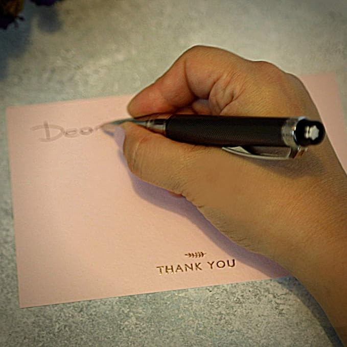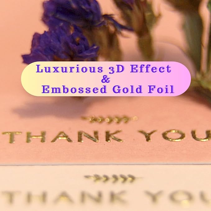 - HIGH QUALITY MATERIAL - Crafted with solid and heavy-duty 320 GSM Italian thick textured paper card, these greeting cards boast a high-end finish with embossed gold foil. The non-glossy paper ensures no fingerprints or scratches when handling these thank-you cards, and they will not smudge or smear.