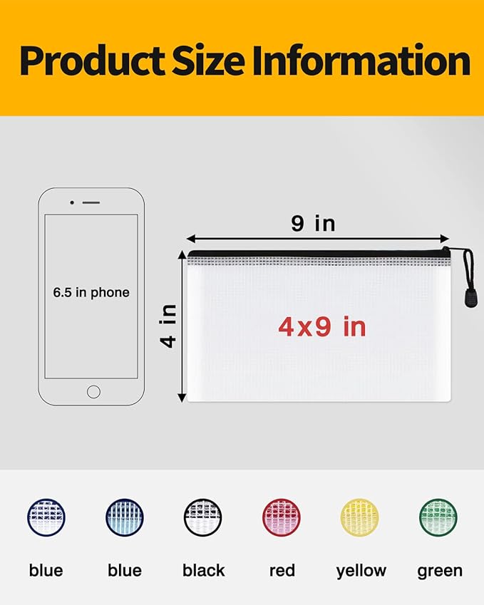 - PACKAGE CONTAINS: You will get a set of 12 Packs 4x9 inches black plastic zipper pouches for the most paper size of letter-size prints or smaller document storage. It can help you organize your miscellaneous items to meet your daily life and work. Manufacturer recommended age 3 years and up