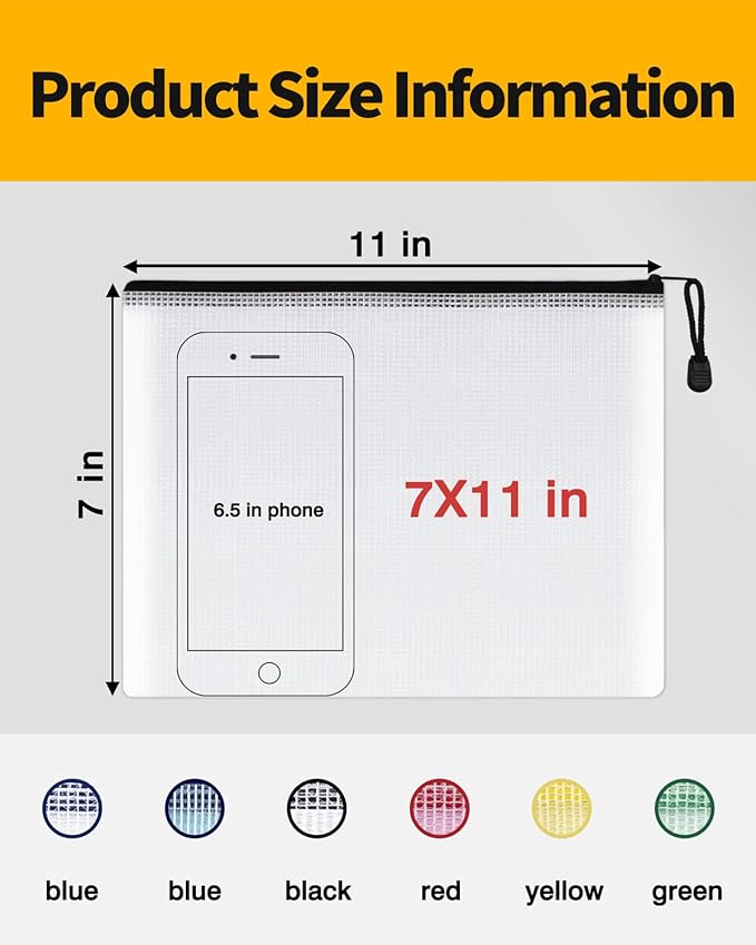 - 【PACKAGE CONTAINS】 - You will get a set of 12 Packs 7x11 inches black plastic zipper pouches for the most paper size of letter-size prints or smaller document storage. It can help you organize your miscellaneous items to meet your daily life and work. Manufacturer recommended age 3 years and up