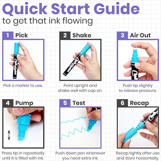 - Mess-Free - These liquid chalk pens are washable. Simply wipe over your surface to clean it!