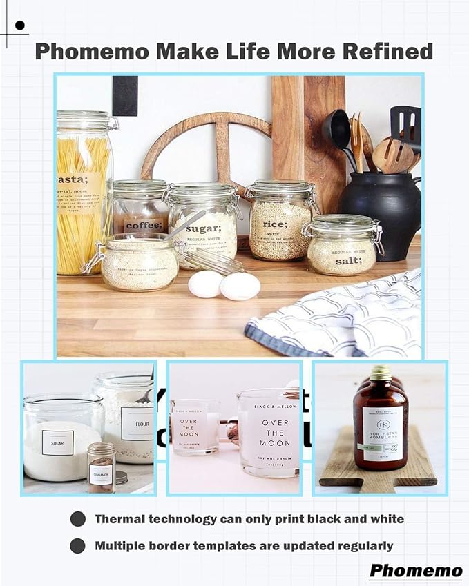 - 【Widely Used】Phomemo is suitable for product labels, business stickers, handmade goods, bakery stickers, wedding stickers, or envelope seals. etc. It can be used not only at home, but also widely used in offices, schools, supermarkets, retail stores, jewelry stores, libraries, pharmacies, etc.