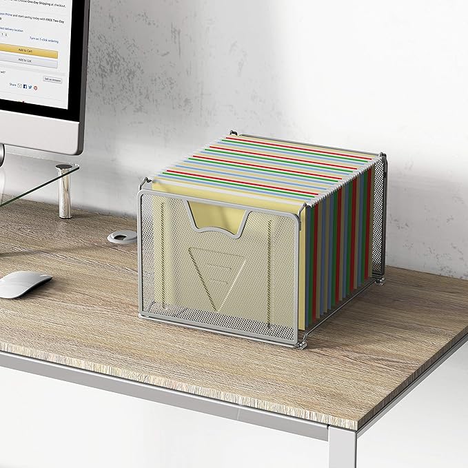 - Mesh desktop organizer: Sturdy steel mesh construction with silver finish