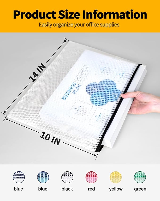 - DURABLE & PORTABLE: SUNEE zipper file bags are made of thick vinyl material, water-resistant, moisture-resistant. Each metal zipper is equipped with a rope loop, which is strong and durable. It can be used as a hanging ring and ready to hang