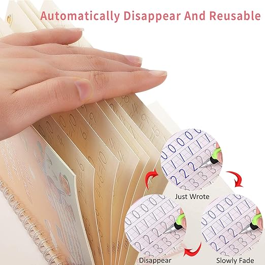- ✍【Material & Reusable Function】 Magic Practice Copybook made of thick paper,no curling,uses the groove design,Handwriting will automatically disappear after dry, therefore, the copybook can be repeatedly use for a long time, help kids write beautiful English words and numbers.