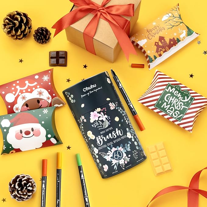 - INCLUDES 5 REPLACEMENT TIPS: Each package comes with 3 replacement brush nibs, 2 fine tips, and a pre-printed numbered color swatch card for your convenience. Ohuhu colored markers set make a perfect gift for birthdays, Christmas, Valentine’s Day, back to school, or any occasion!