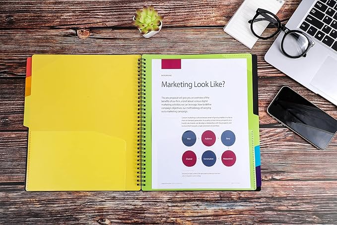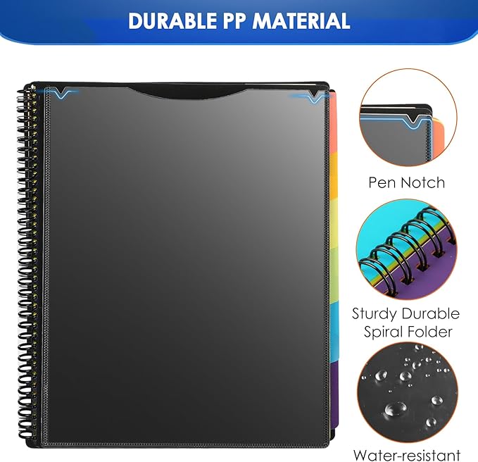 - Durable & Customizable Spiral Binder- Made from durable polypropylene, tear-proof and water-resistant, archival safe and PVC free, this colored project organizer features a custom front cover with tear-proof corners for safe and multi-purpose use.