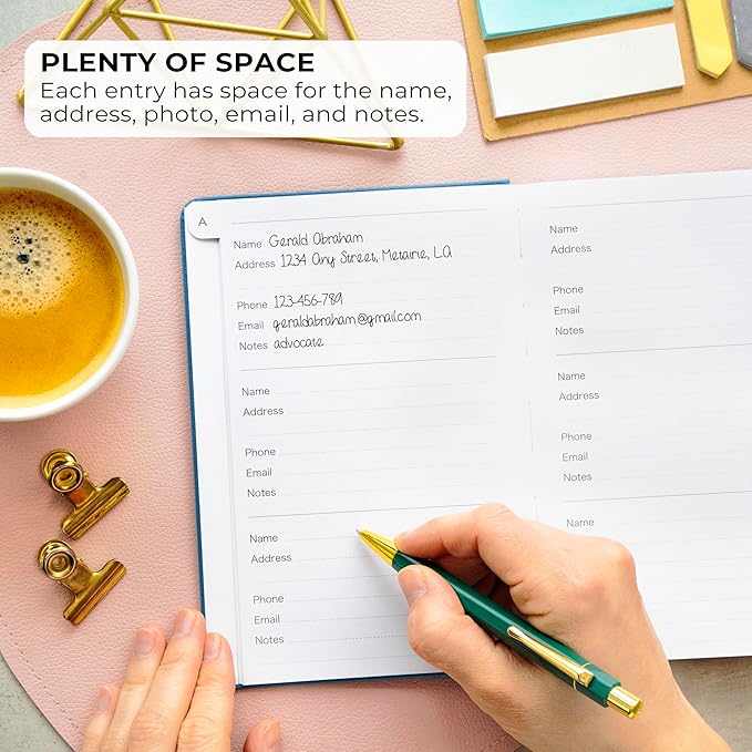 - ORGANIZED & SAFE - This telephone and address book has alphabetical A-Z tabs to minimize time spent searching for any particular contact. At the back of the medium sized address book organizer, you will find space for important phone numbers and dates.