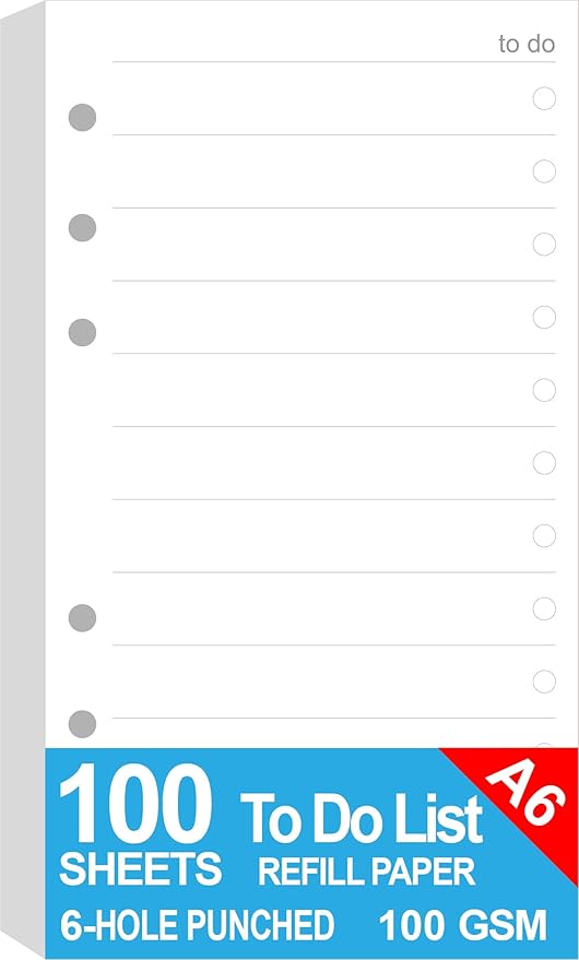 A6 To Do List Refills for Filofax Personal Size Planner/Binder, 6 Hole Punched, 100 Sheets/200 Pages, To Do Planner with Check List Organizing, 100gsm, White, 3.74 x 6.73 Inch
