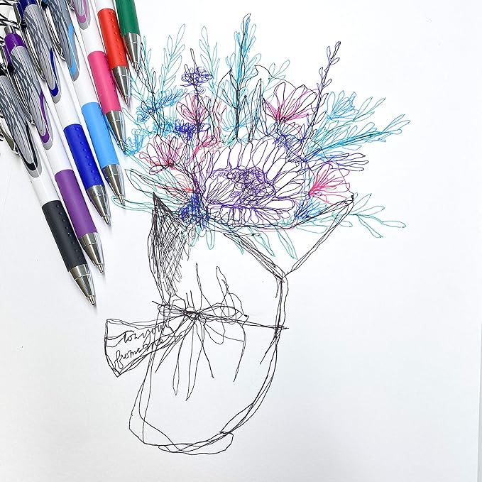 - Chic, stylish plastic barrel matches the ink inside so it’s easy to find the right colored pen for your project, and the soft latex-free rubber grip assists you in guiding the ink flow as you jot