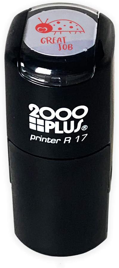 - Includes: One 9/16" round self-inking ladybug stamp. Red ink. Stamp incorporates the phrase "Great Job!" above an adorable illustrated ladybug.